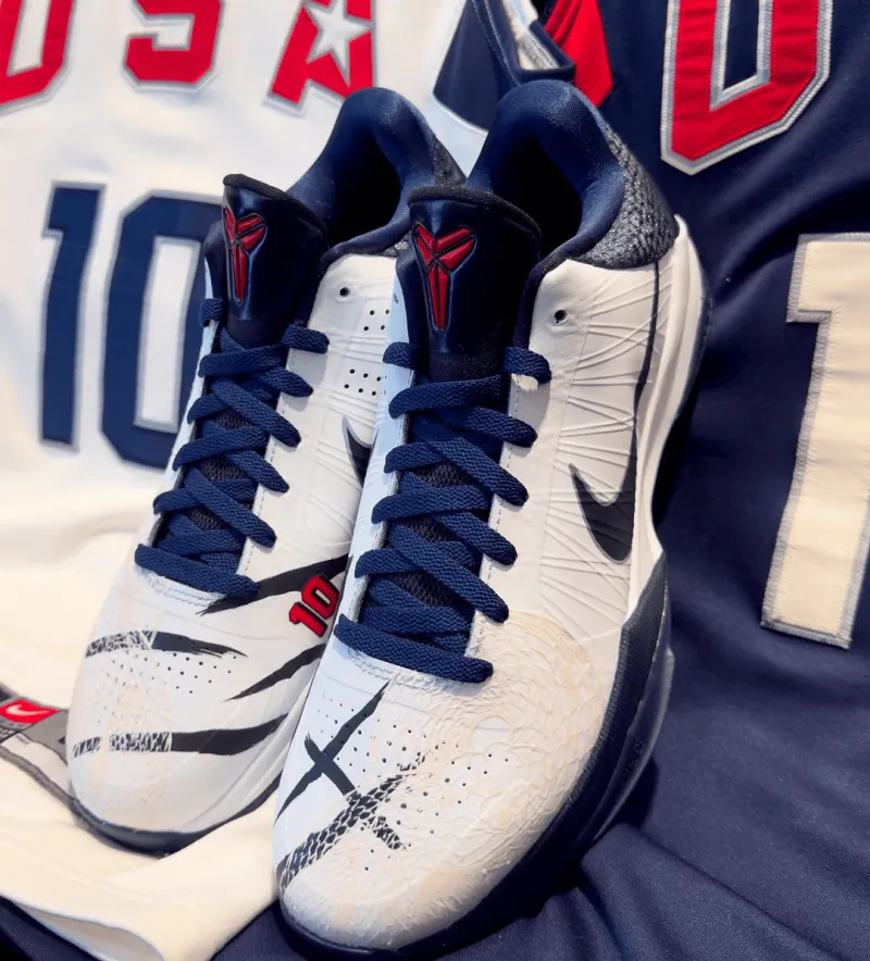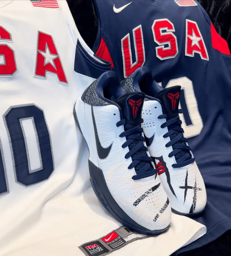 虎扑09月03日讯 海外知名球鞋定制师MA MBACONCEPTS社媒展示客制版美国队配色Nike Kobe 5 Protro,设计灵感来自科比-布莱恩特在2008年北京奥运会中穿着的Nike Hyperdunk2008 PE。